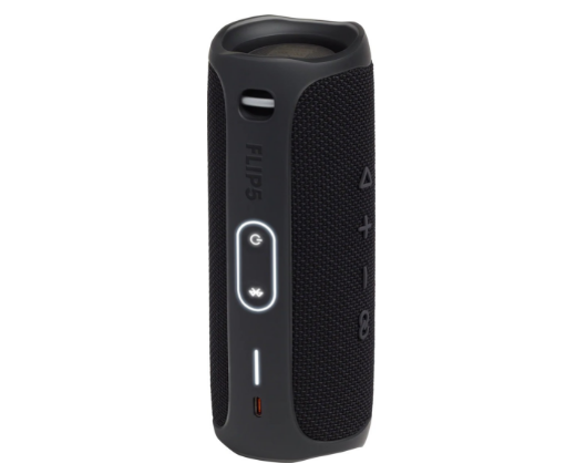 Внешний вид колонки остался практически без изменений, за исключением места размещения кнопки блютуз и исчезновения резиновой заглушки для прикрытия разъемов. Flip 5 обладает 1 универсальным разъемом USB Type-C. Вес Flip 5 всего 540 грамм (на 25 грамм больше Flip 4) — девайс помещается в ладонь, боковой карман рюкзака, держатель для бутылки на велике или в автомобильную подставку для стакана. Эта модель отлично подходит для любителей активного образа жизни и путешествий с ручной кладью.