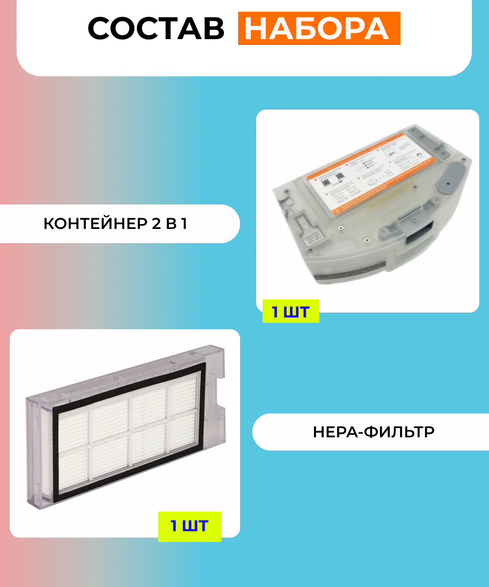 Контейнер 2 в 1 1 шт., HEPA-фильтр 1 шт. |