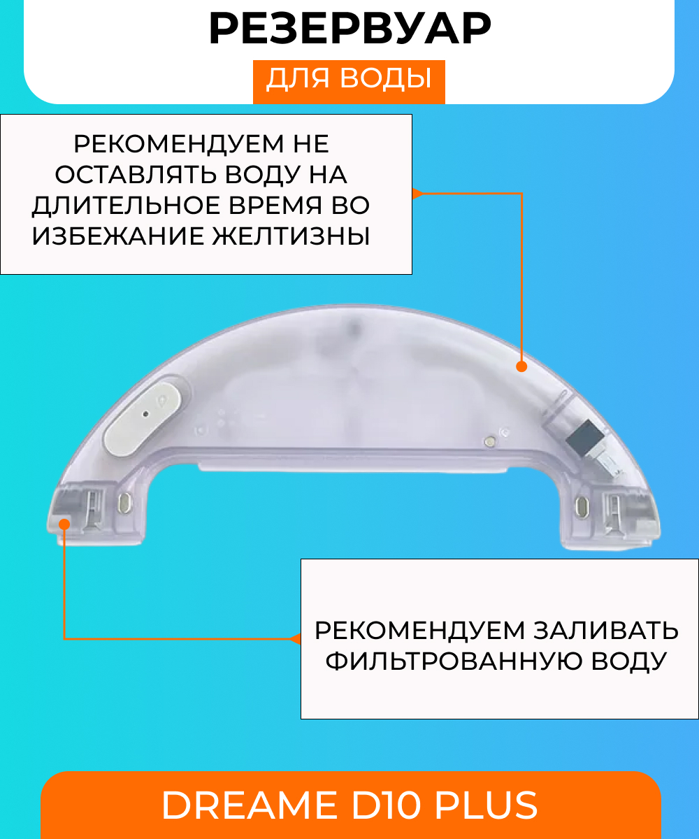 Резервуар воды для робота-пылесоса Dreame D10 Plus — это неотъемлемый аксессуар для тех, кто ценит высокую эффективность уборки, умные технологии и простоту в использовании. Наслаждайтесь свежестью и чистотой вашего дома с помощью этого инновационного решения от Dreame. Позвольте вашему роботу-помощнику делать еще больше для вашего комфорта и благосостояния.